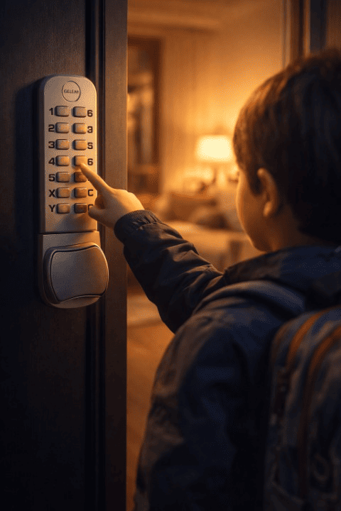 אם גם לך נמאס לחזור לבית ולגלות שהמפתח של הדלת נאבד, זה הפתרון המושלם. אין צורך שכל ילד או בן משפחה, יסחוב אתו מפתח לכל מקום, מנעול מכני קוד לדלת, הוא הפתרון המושלם. הרכבת המנעול על הדלת, חוסכת את הצורך במפתח וללא צורך בחיבור חשמל או סוללות. המנעול מכני לגמרי. פתיחת הדלת נעשית על ידי צירוף מספרים, שאנחנו קובעים בעת ההתקנה. ניתן כמובן לשנות את הקוד גם לאחר מכן.